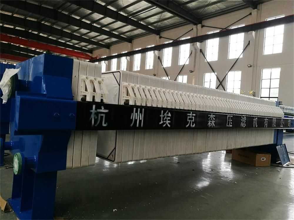 隔膜壓濾機和常規箱式壓濾機的主要區別在于,在濾板的兩側都增加了兩個彈性膜(復合橡膠膜是一個整體式膜。在操作期間,當進料完成時,將高壓流體介質注入膜中,并使整個膜膨脹以過濾濾餅,以進一步使濾餅脫水,這是壓力過濾。在隔膜壓濾機運行期間,液壓系統使用液壓油作為壓力載體來傳遞內部壓力。